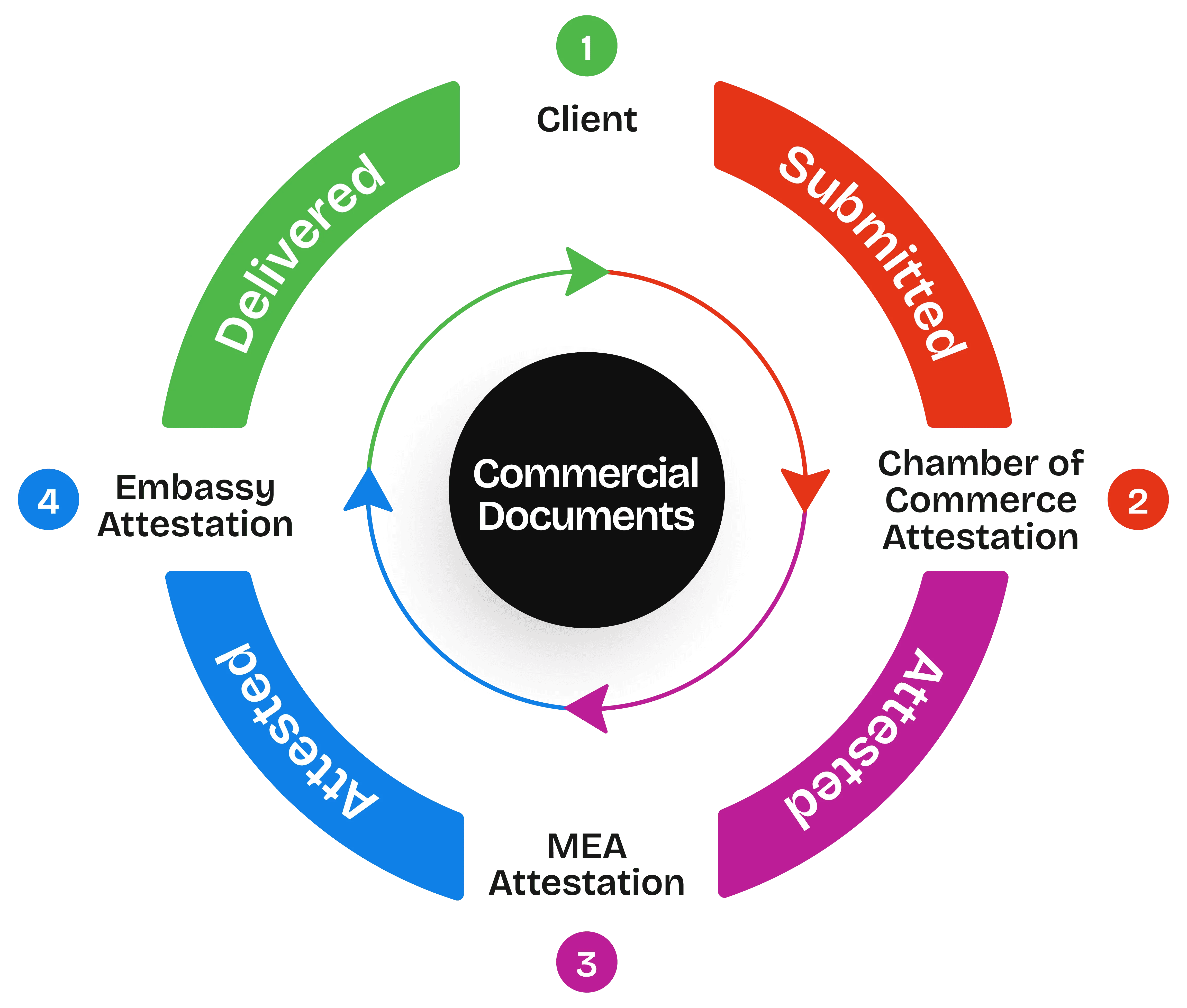 For the attestation of commercial documents, the procedure is slightly different from that for educational documents. Here, primarily, the applicant has to complete chamber of commerce attestation. Then MEA and Embassy attestation.