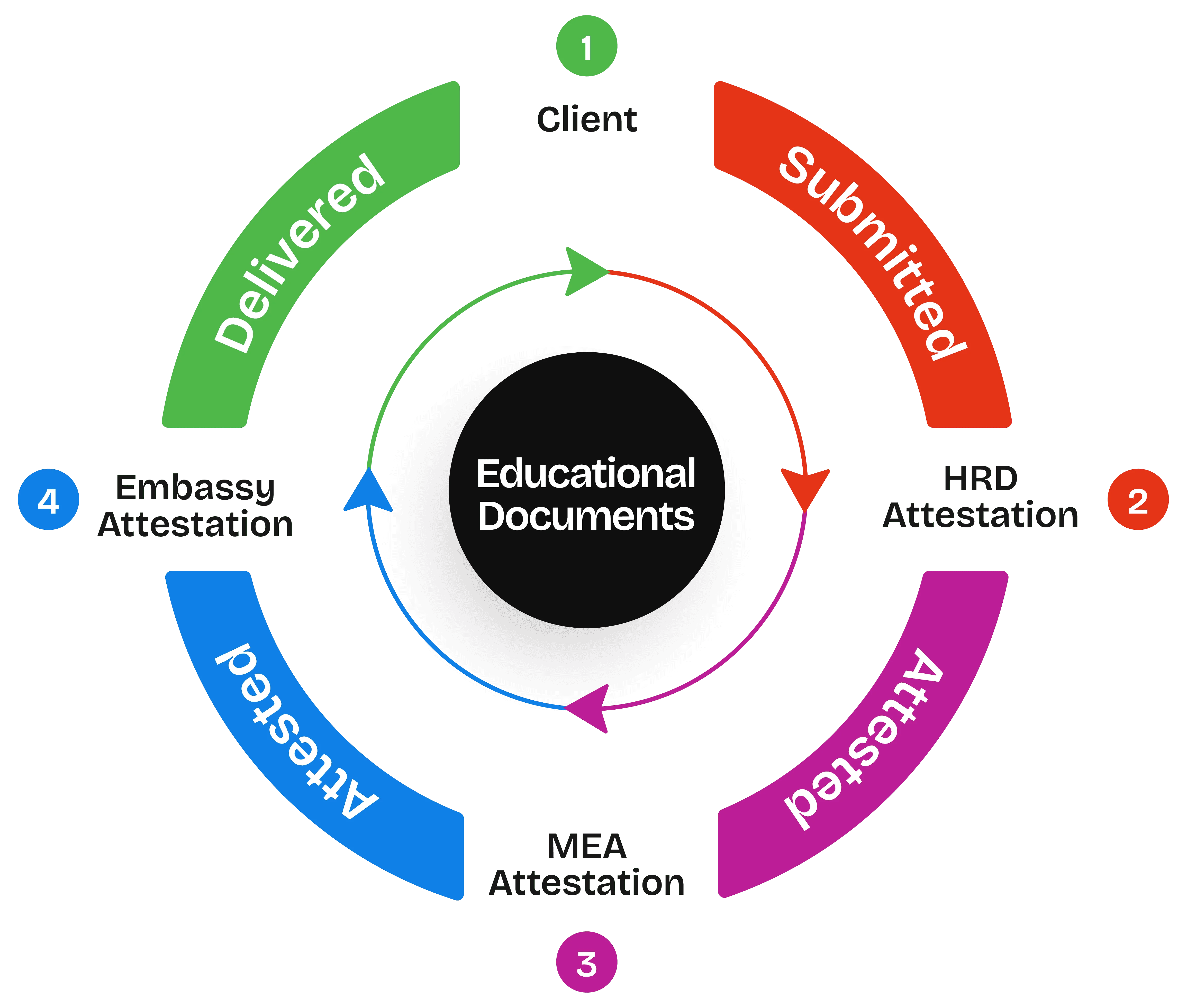 The procedure for educational document attestation is as follows: The candidate has to do HRD attestation first, followed by MEA attestation and Embassy attestation.